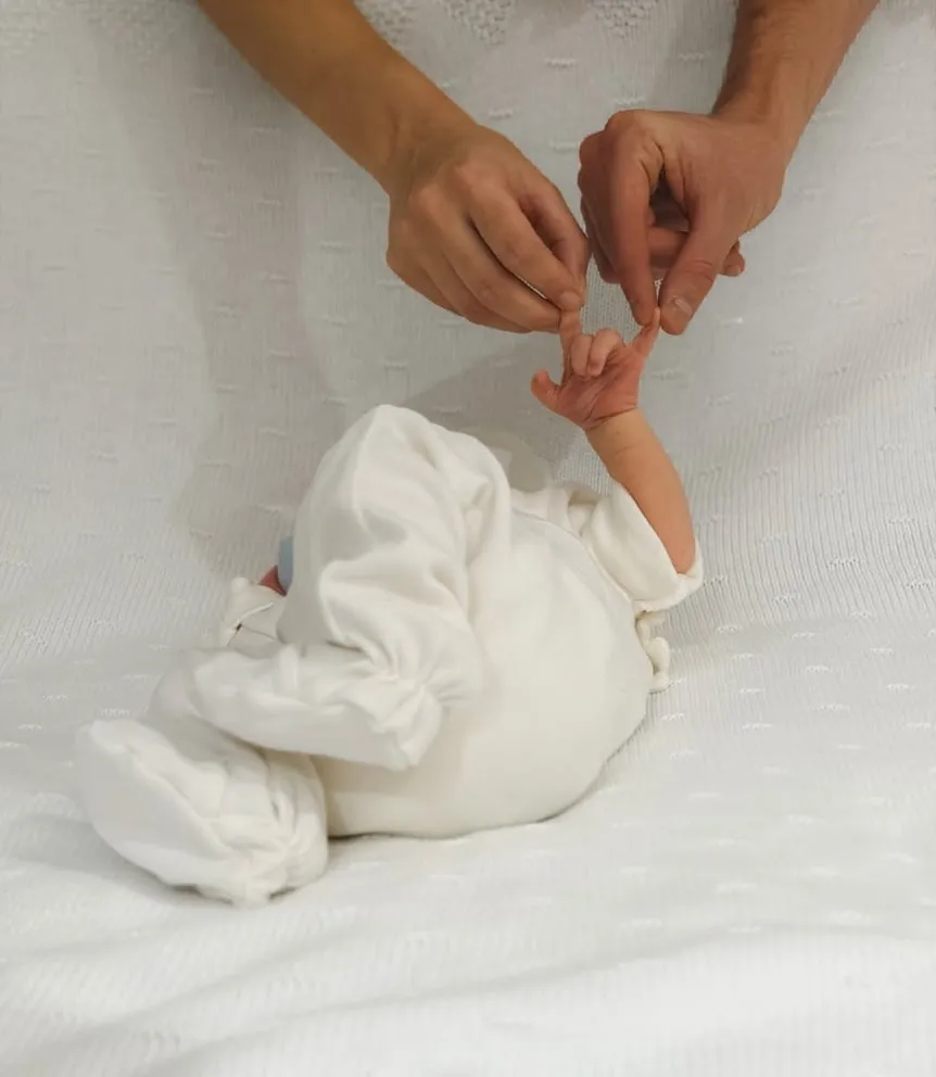 La presentación fue tan emotiva como simbólica. A través de una publicación en Instagram, la pareja le dio la bienvenida al bebé con una imagen que rápidamente se volvió viral. En la foto, la pequeña mano de Amadeo reproduce un gesto inconfundible para los hinchas.