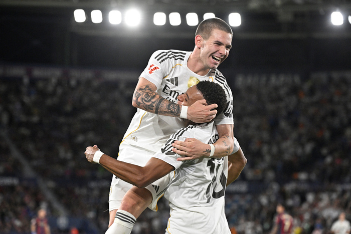 El ex River tuvo su bautizo en la red, en tanto Vinicius y Mbappé (2) abultaron el resultado para los de Xabi Alonso, que continúan en lo más alto de la tabla y con puntaje perfecto.