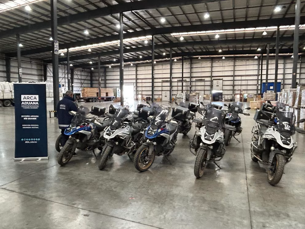 RÍO GRANDE.- La División Aduana asentada en el Paso Fronterizo San Sebastián incautó este lunes por la tarde 12 motocicletas BMW R1300 GS de alta cilindrada, valuadas en conjunto en unos 480 mil dólares.