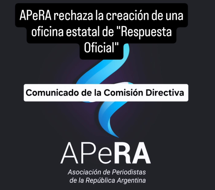 La Asociación de Periodistas de la República Argentina (APeRA) rechaza la  creación de la “Oficina de Respuesta Oficial” en la red social X, anunciada por el Gobierno nacional.
