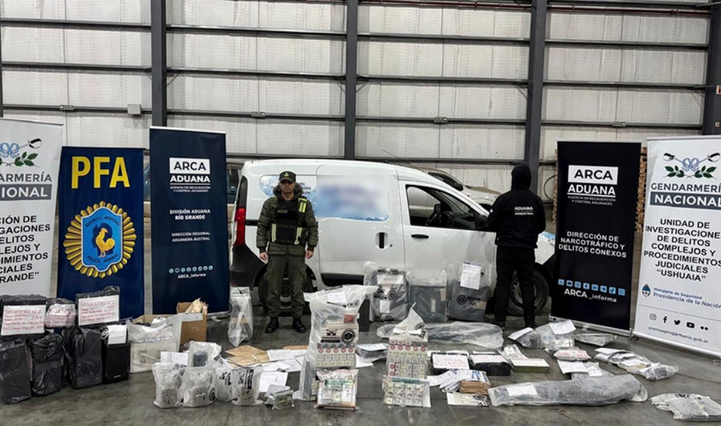 Como resultado de las inspecciones, en la ciudad de Río Grande se secuestró dinero en efectivo, atados de cigarrillos, plantas de marihuana, armas de fuego, un vehículo y demás elementos de interés.