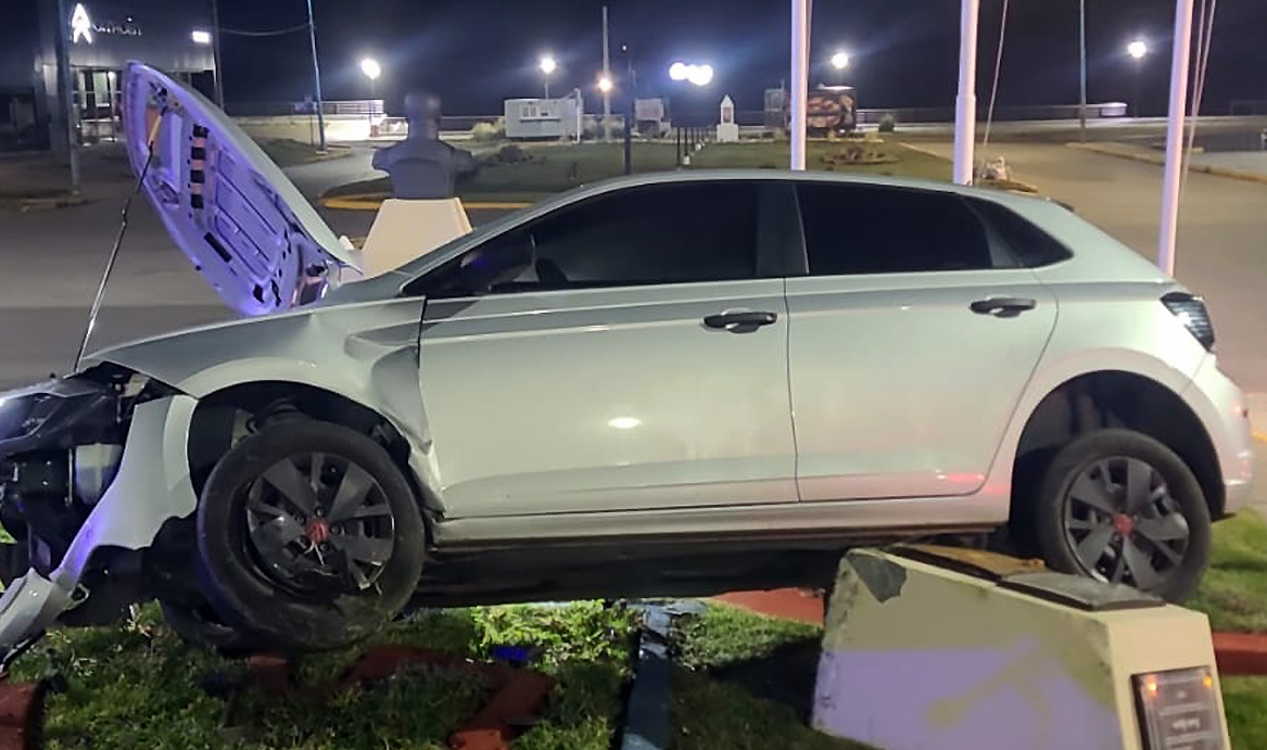 RÍO GRANDE.– Personal policial intervino en la intersección de avenida Belgrano y Elcano tras el despiste de un Volkswagen Polo Track gris, que finalizó su recorrido sobre el boulevard.