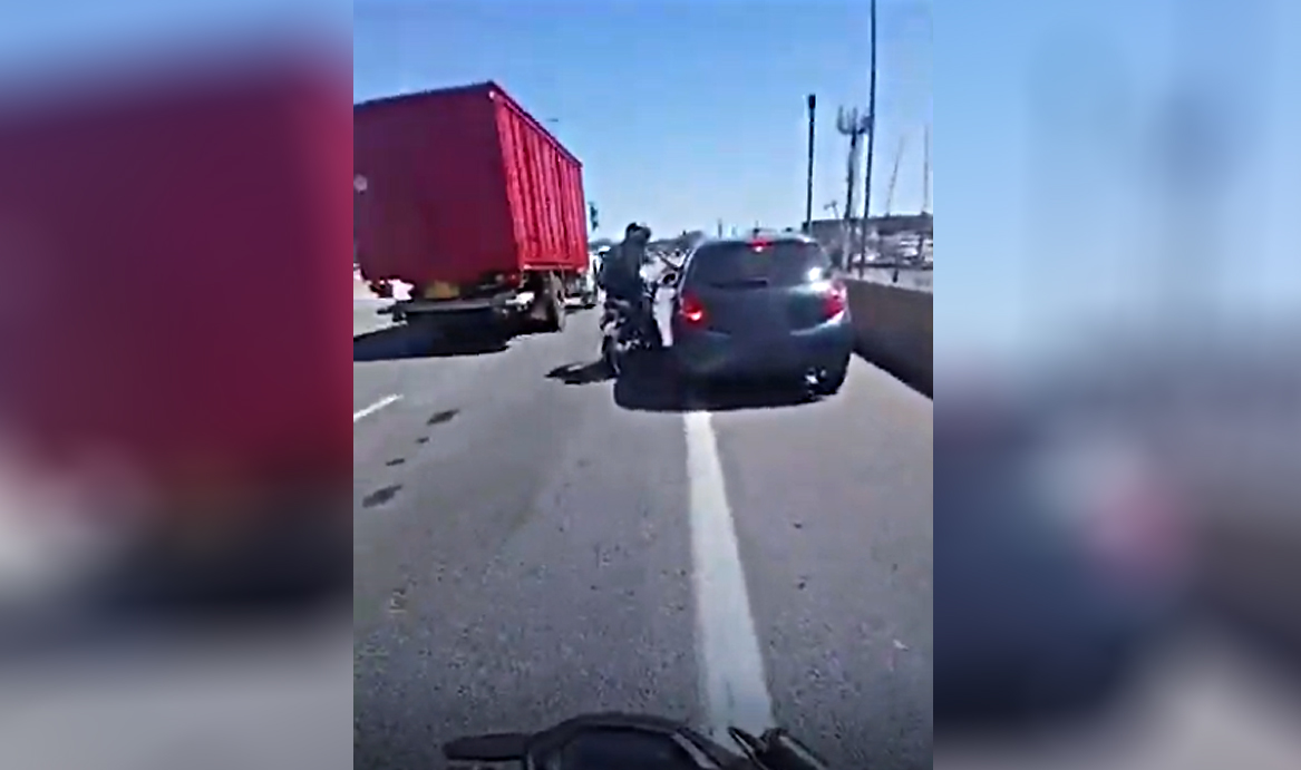 En las imágenes se observa cómo un automovilista y un motociclista intercambian insultos y agresiones mientras circulaban por la traza, realizando maniobras prohibidas -circular por la banquina- y detenciones imprudentes, causando un riesgo evitable al resto de conductores que se trasladaban en ese momento. Toda la secuencia fue registrada por otro usuario que transitaba detrás de ellos.