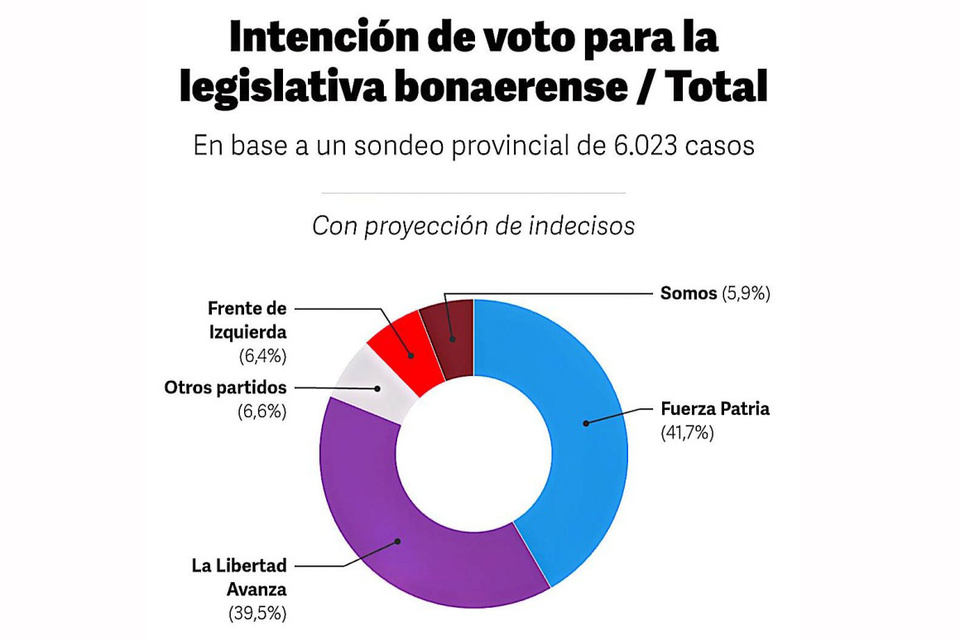 El peronismo, agrupado en Fuerza Patria (FP), aparece como favorito para imponerse este domingo en las elecciones bonaerenses, con una leve diferencia sobre La Libertad Avanza, el oficialismo de Javier Milei. El promedio de las encuestas marca una ventaja del FP de entre dos y tres puntos. Las diferencias pueden aumentar o reducirse en función del ausentismo, con un fenómeno peculiar percibido por la mayoría de los encuestadores: las pocas ganas de votar esta vez no predominan entre el electorado de FP sino en el libertario, especialmente jóvenes decepcionados con la falta de trabajo y bajos sueldos y en los votantes libertarios de más edad enojados por la corrupción que emergió con claridad con el caso Libra y los audios de Diego Spagnuolo.
