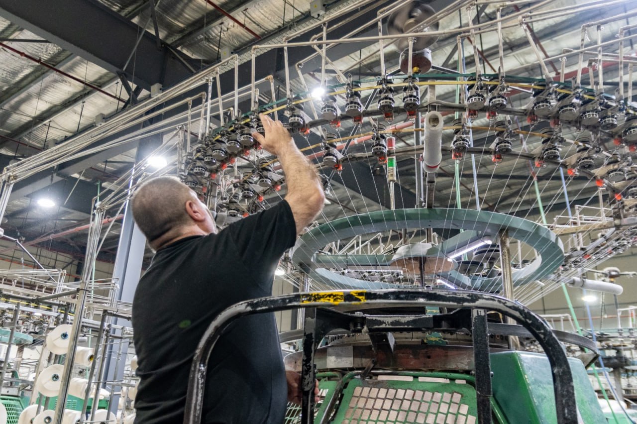 Durante la visita, se pudo observar la tecnología de punta con la que cuenta la fábrica y se destacó la notable capacidad de resiliencia de Australtex, que logró reanudar sus operaciones en 2022 tras superar un devastador incendio en 2021. Un dato que refleja el contexto actual es que, a pesar de operar con un 50% de su capacidad ociosa, la compañía mantiene un firme compromiso con su personal y un alto estándar tecnológico.